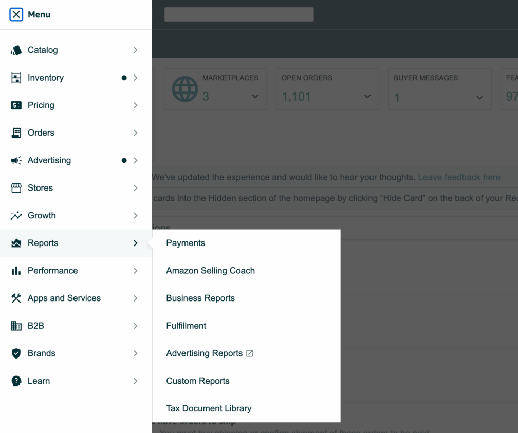 The Reports section provides detailed breakdowns of your FBA shipments, customer metrics, and refunds. This is especially helpful for identifying which products are most profitable.