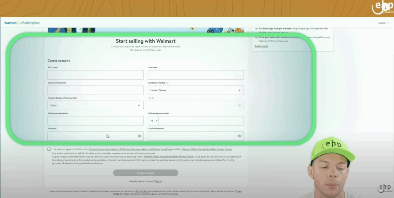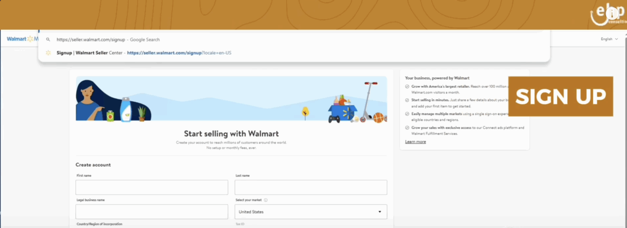 First things first, go directly to seller.walmart.com and click Sign Up.