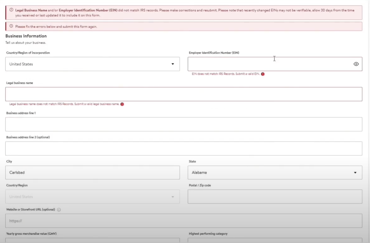 Everything must match your IRS paperwork and any other marketplaces on which you operate. Walmart will look for discrepancies to protect customers and remove Walmart fakes.