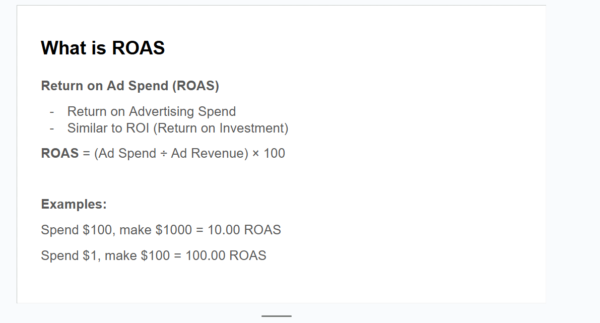 It’s like ROI (Return on Investment) but specifically for ad spend.