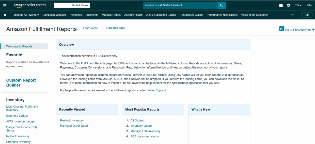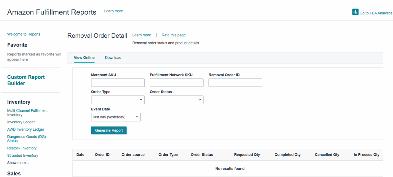 Once in the Fulfillment section, scroll down to find the Removal Order Detail report. - Click “View Online”