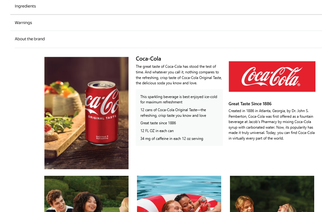 Big brands like Coca-Cola do this extremely well. If you check out their Walmart listings, you’ll notice they use vivid images, brand storytelling, and lifestyle photos, all designed to boost credibility and conversions.
