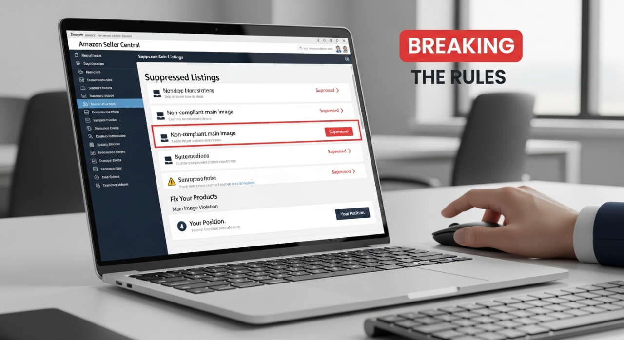 Suppression means your product is removed from search results and category browsing. A customer can no longer find your product unless they have a direct link. For all intents and purposes, your product is invisible. To find and fix these issues, regularly check the “Fix Your Products” page within your Seller Central dashboard. This is your primary alert system for any compliance-related problems, including image violations.
